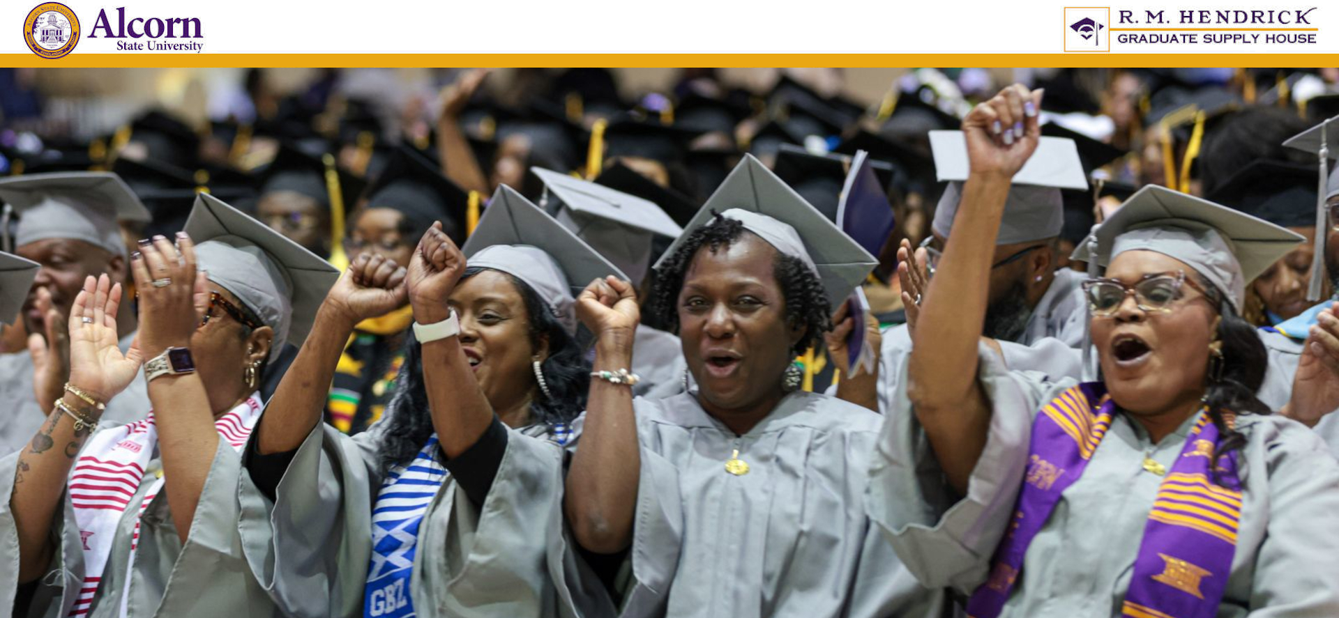 Graduate Supply House is honored to provide industry leading academic regalia for Alcorn State University. Please click the COMPLETE YOUR ORDER link below to reserve an outfit especially for you.